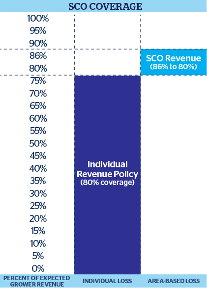 SCO follows the coverage of your underlying policy. If you choose Yield Protection (YP), then SCO covers yield loss. If you choose Revenue Protection (RP), then SCO covers revenue loss.